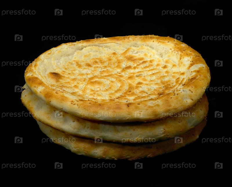 Свежеиспеченный традиционный узбекский хлеб, изолированный на черном фоне
