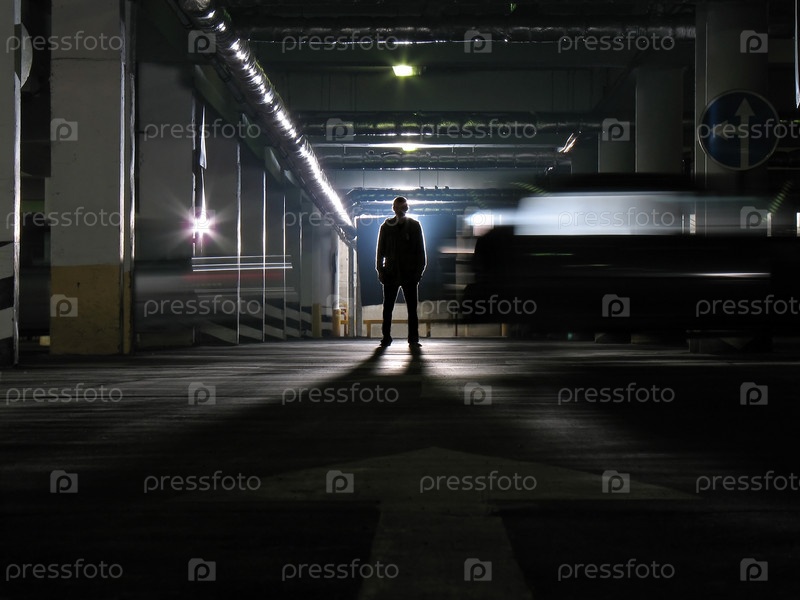 Человек в подземной парковке