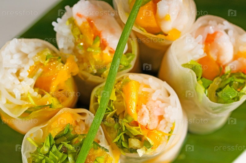 Типичные вьетнамские летние рулеты на пальмовом листе