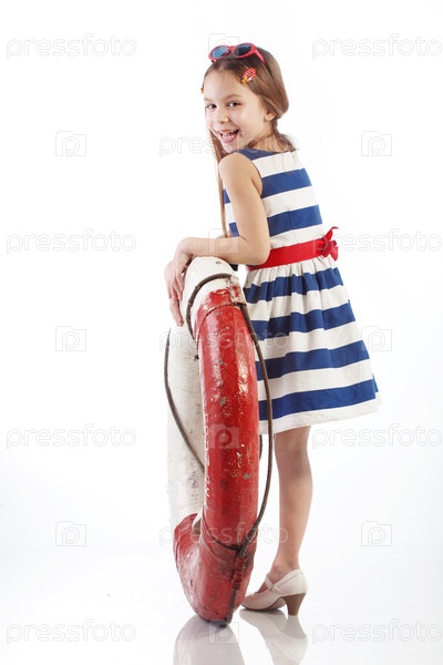 Портрет очаровательной девочки в морском костюме