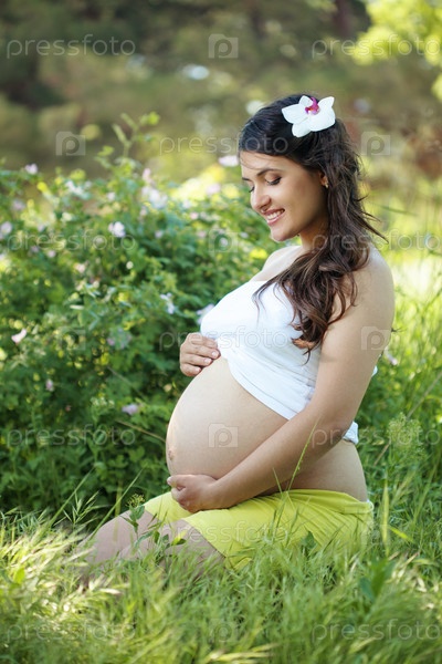 Портрет красивой беременной женщины на свежем воздухе