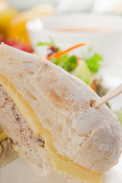 Бутерброд с сыром и овощной салат