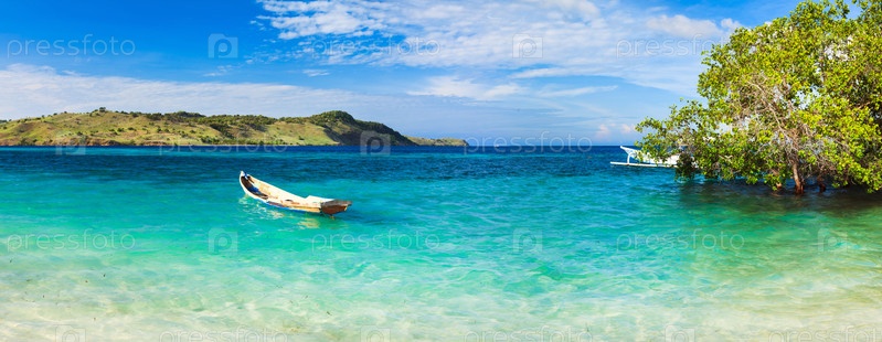 Панорама побережья. Лодка на переднем плане