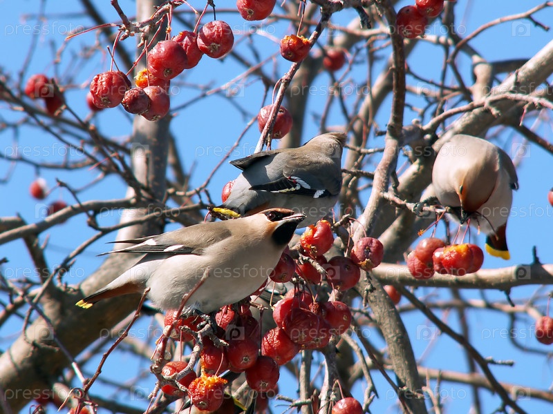 Птицы едят рябину