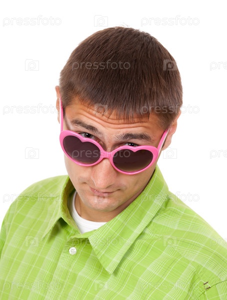 Портрет мужчины в розовых очках, изолировано на белом фоне