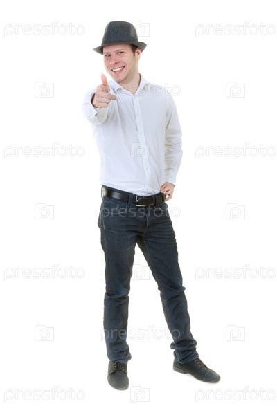 Портрет веселого человека в шляпе, изолировано на белом фоне