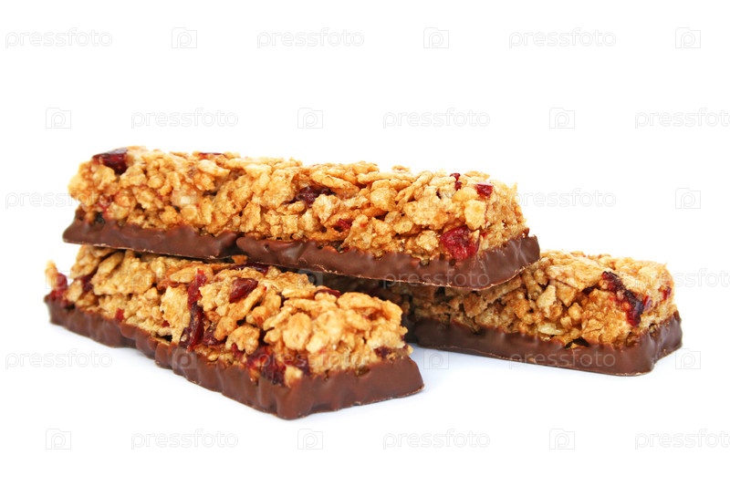 Зерновые батончики с шоколадом, изолированные на белом фоне