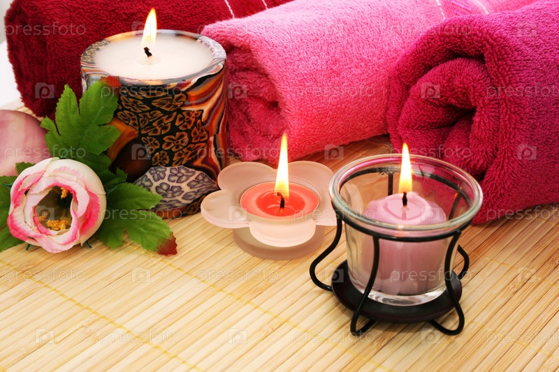 Полотенца, мыло, свечи и цветок