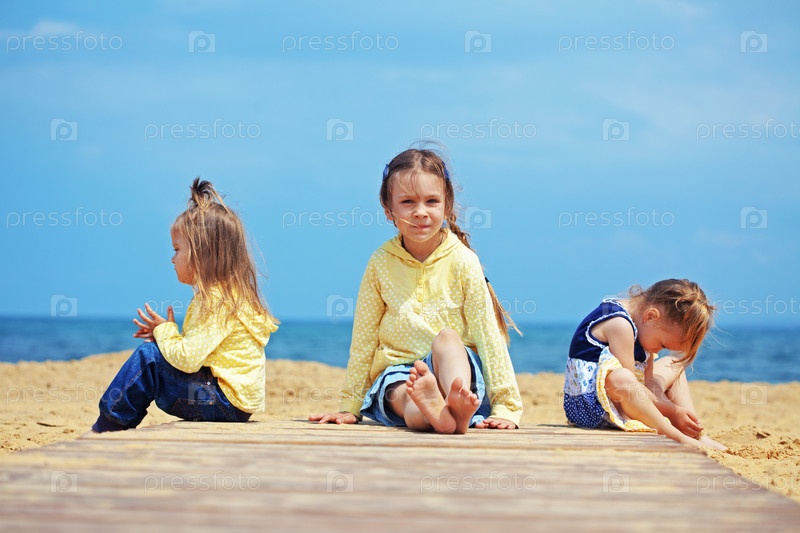 Группа детей играет на пляже