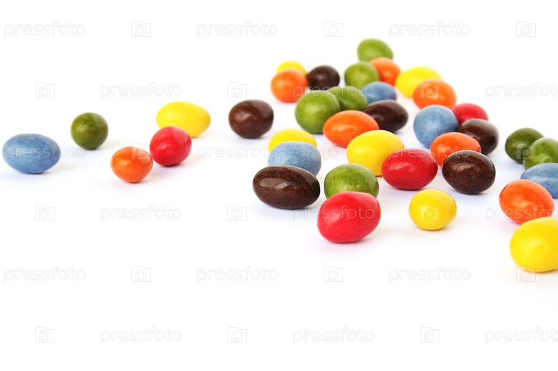 Красочные конфеты с изюмом на белом фоне