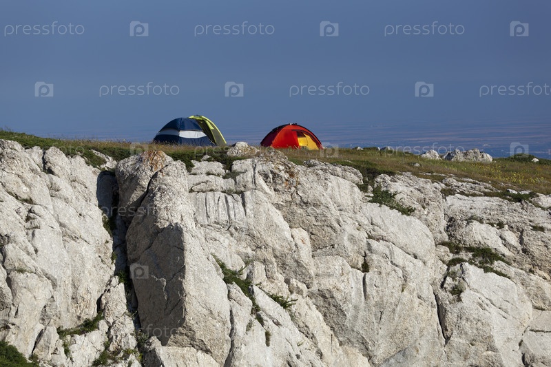 Три туристические палатки на горе