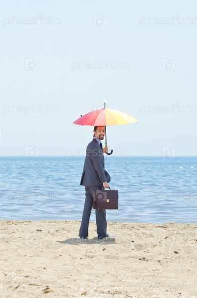 Человек с зонтиком на пляже
