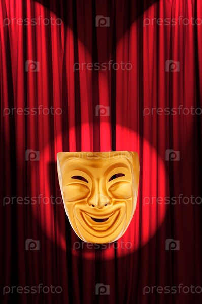 Театральная маска на фоне занавеса