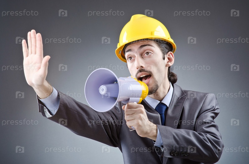 Молодой человек с громкоговорителем
