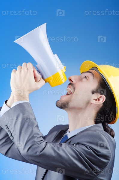 Молодой человек с громкоговорителем