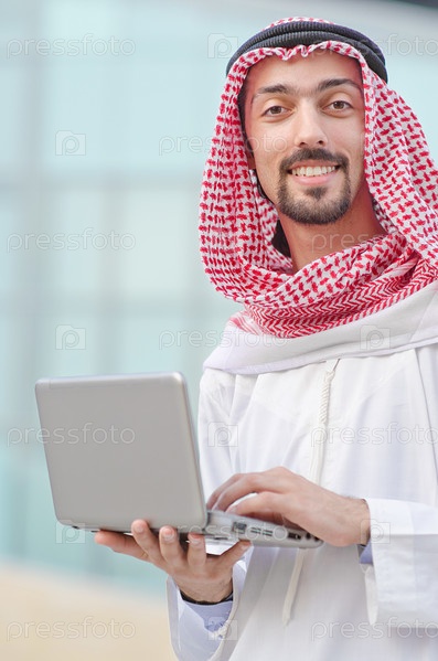 Молодой араб с ноутбуком