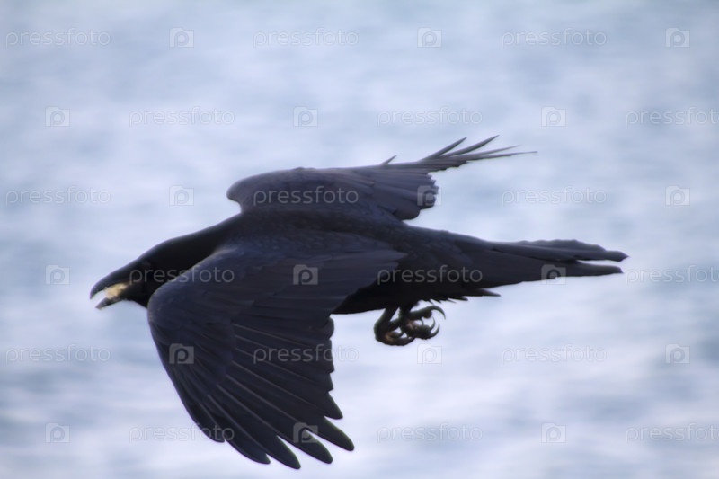 Ворон в полете крупным планом