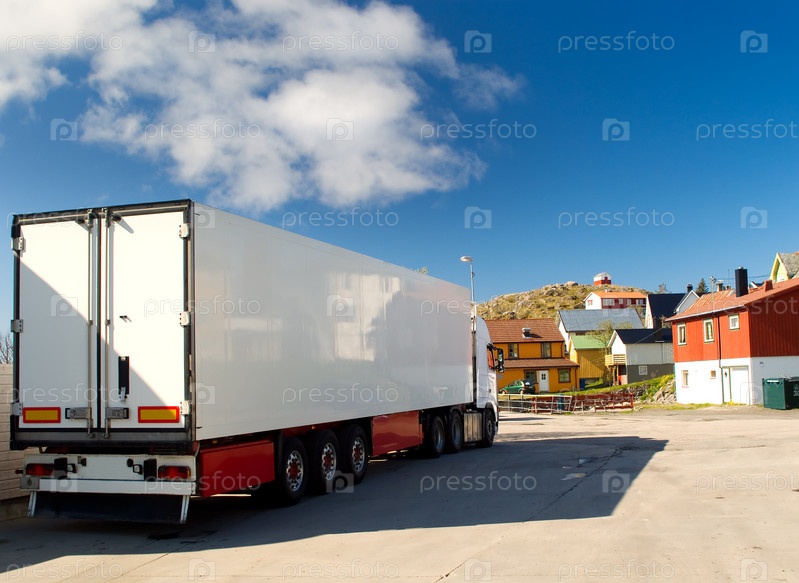 Грузовик на улице Норвежской деревни