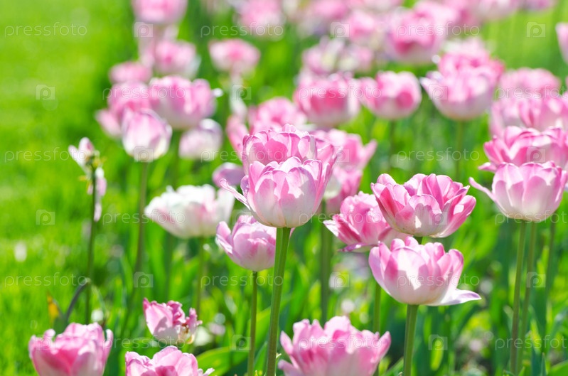 Сад с тюльпанами летом