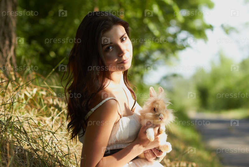 Девушка с кроликом на свежем воздухе