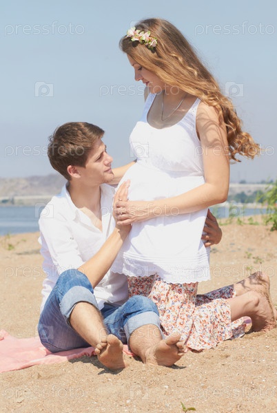 Молодая счастливая пара в ожидании ребенка