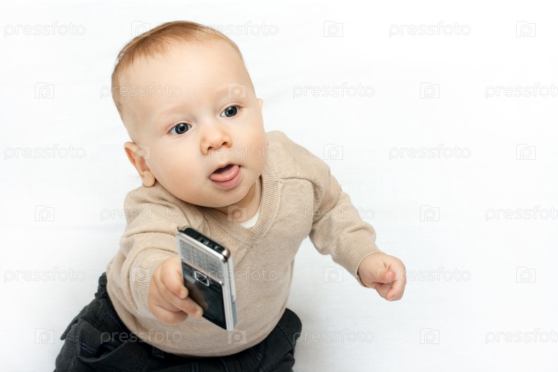 Маленький ребенок играет с мобильным телефоном