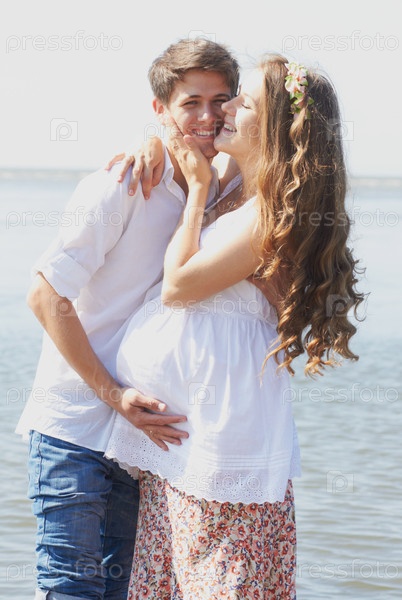 Молодая счастливая пара, ждущая первенца