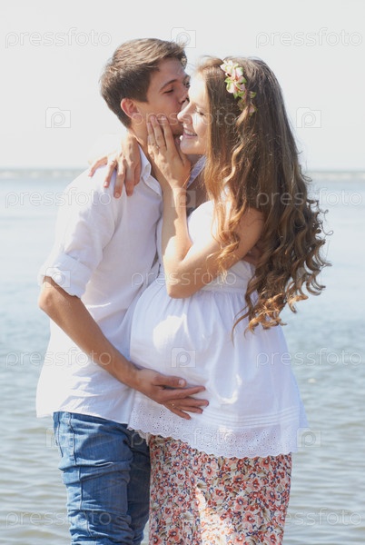 Молодая счастливая пара, ждущая первенца