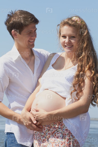 Молодая счастливая пара в ожидании ребенка