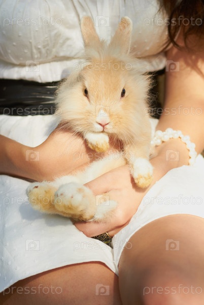 Кролик в руках девушки на свежем воздухе