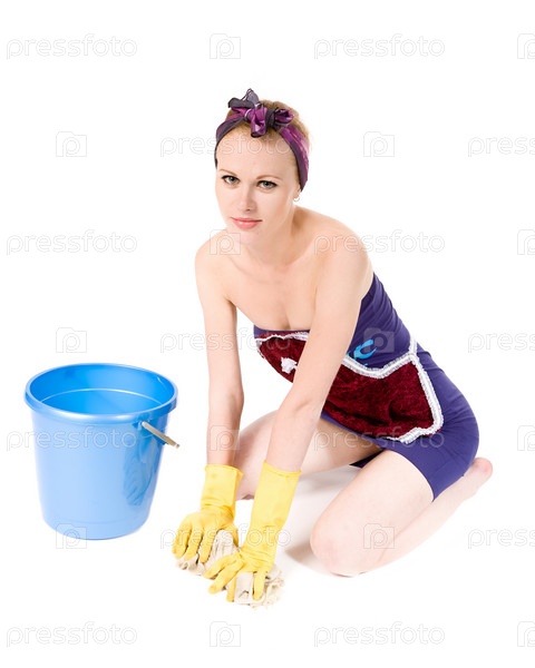 Молодая женщина занимается работой по дому, изолированная на белом фоне