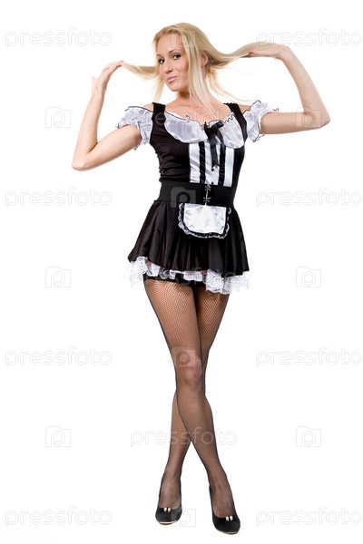 Портрет красивой блондинки в костюме горничной