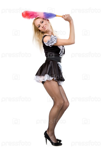 Красивая блондинка в костюме горничной