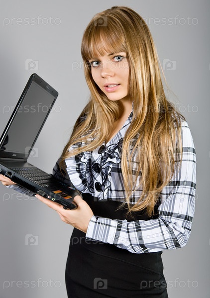 Длинноволосая девушка с ноутбуком
