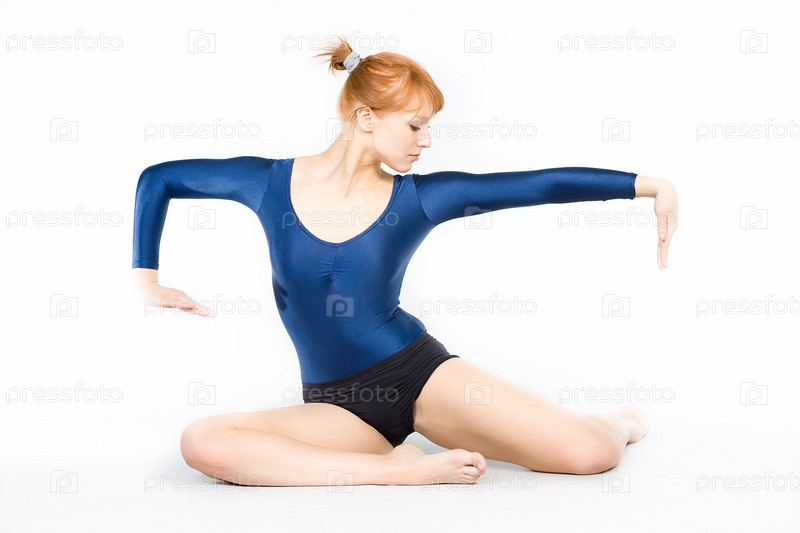 Молодая красивая гимнастка на тренировке