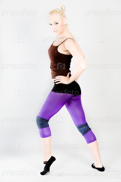 Молодая красивая гимнастка на тренировке