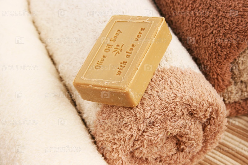 Полотенца и оливковое мыло с алоэ вера