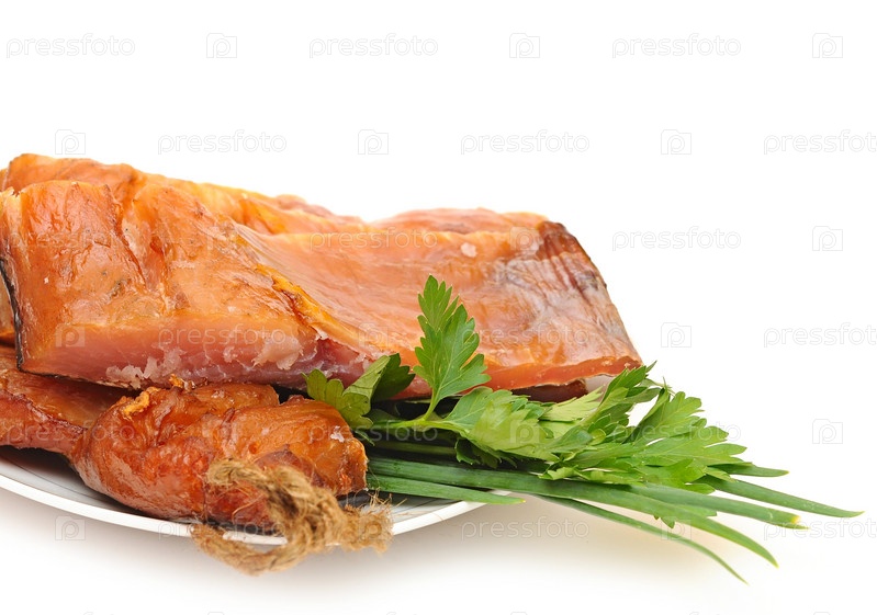 Копченая рыба на белом фоне