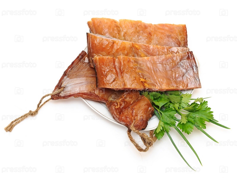 Копченая рыба на белом фоне