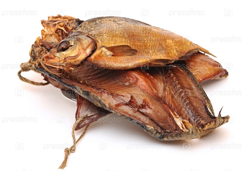 Копченая рыба на белом фоне