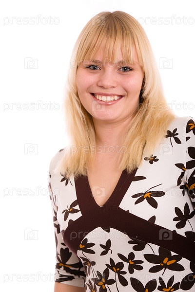 Портрет молодой красивой девушки на белом фоне