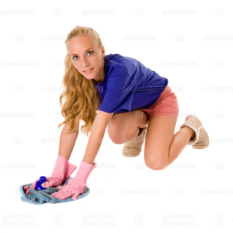 Молодая женщина моет пол