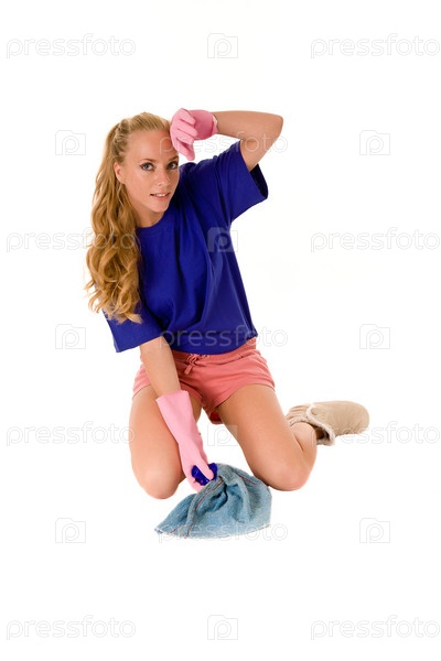 Молодая женщина моет пол