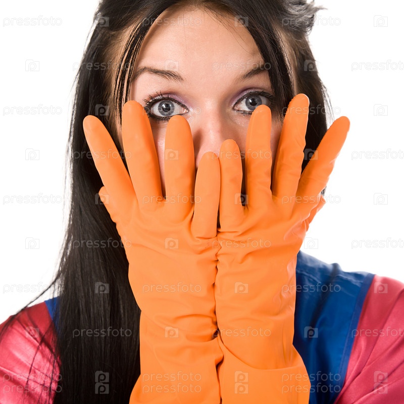 Молодая женщина в резиновых перчатках