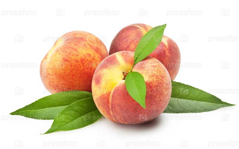 Спелые персики на белом фоне