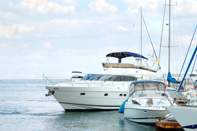 Роскошные моторные яхты на стоянке в порту