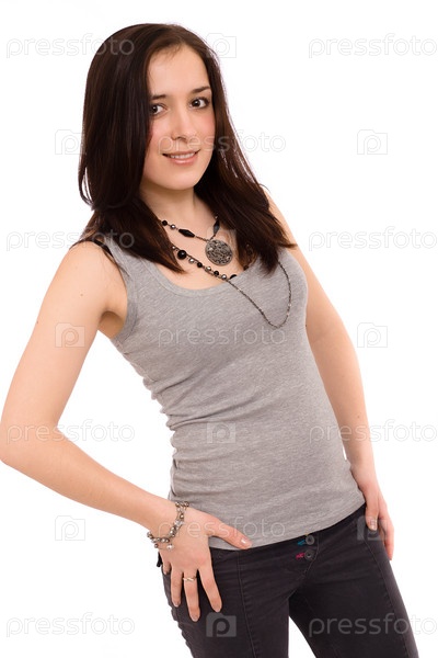 Портрет красивой девушки на белом фоне