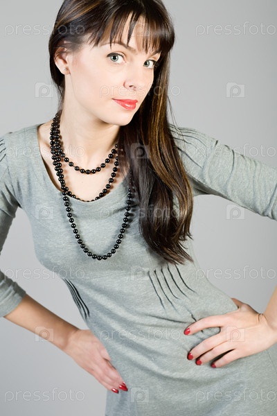 Красивая девушка на сером фоне