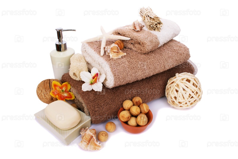 Полотенца и спа-набор, изолированный на белом фоне