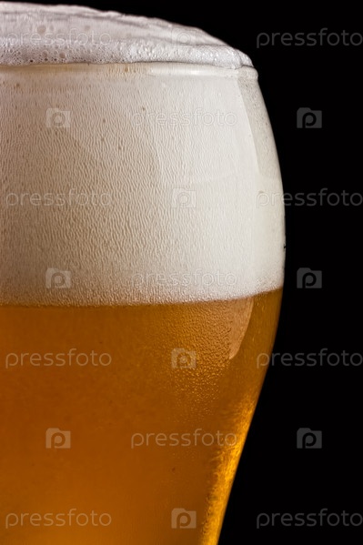 Фрагмент бокала холодного пива с легкой пеной
